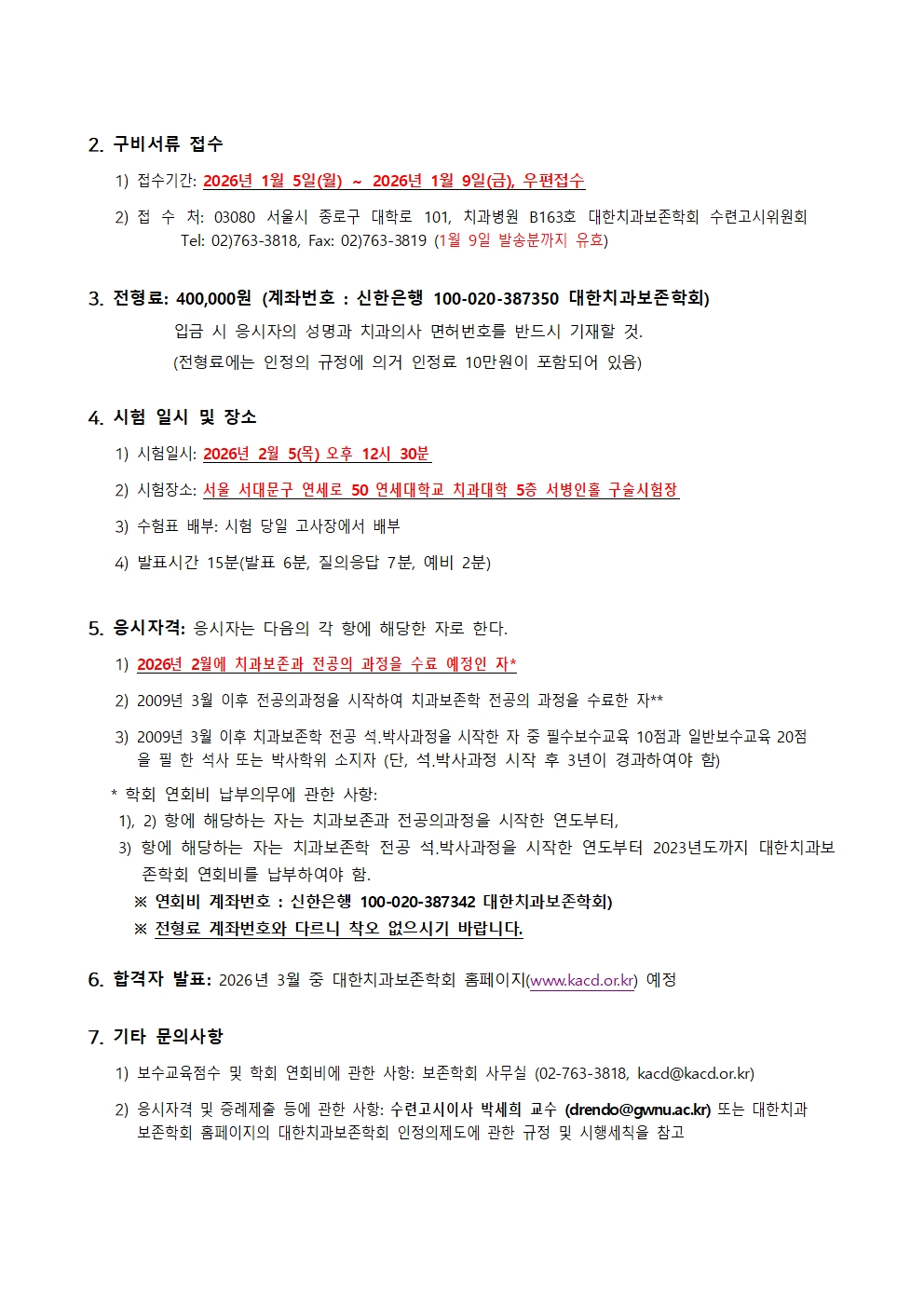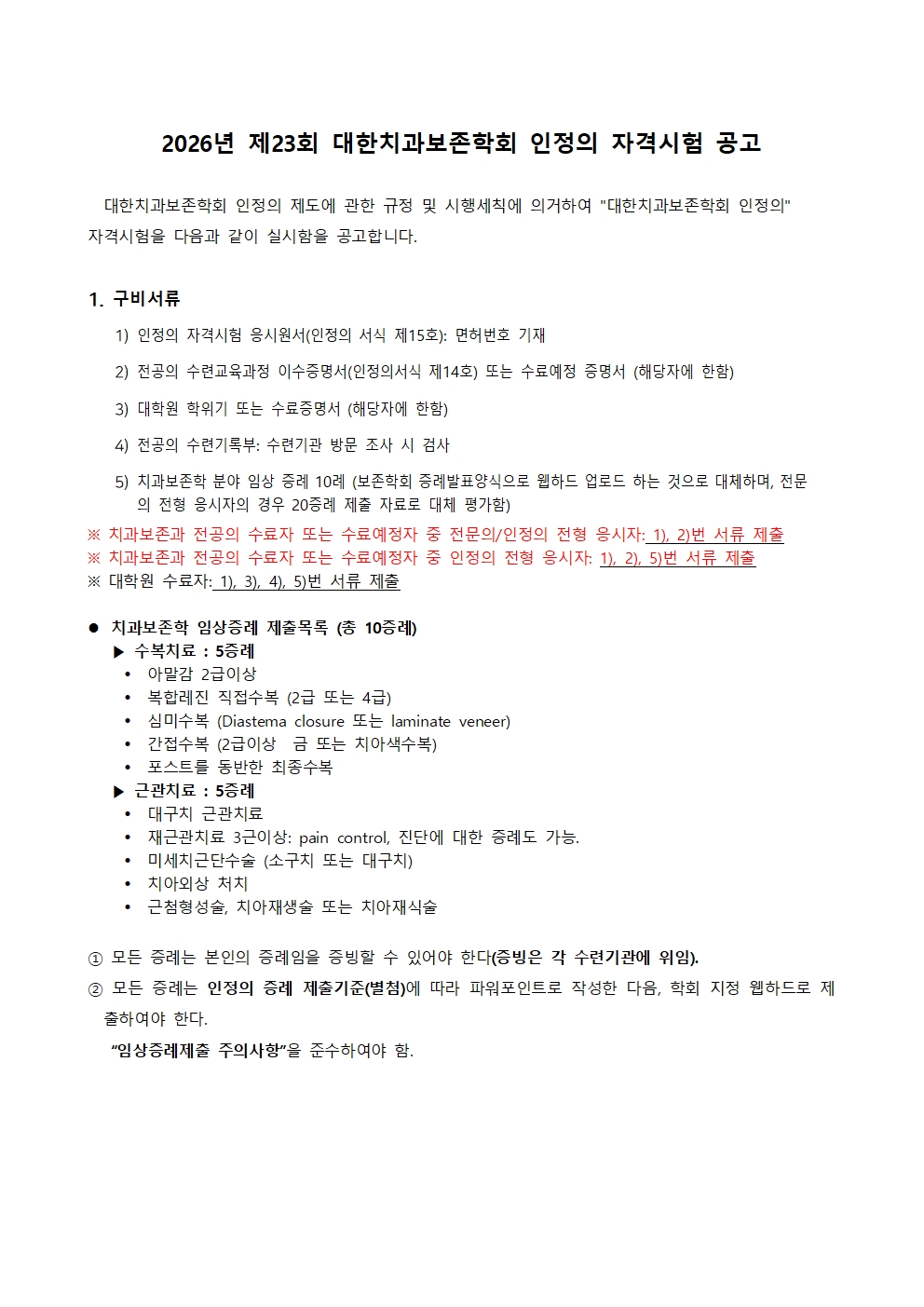 수련고시 25-18 2026년도 대한치과보존학회 인정의자격시험 공고.pdf (다운15회)